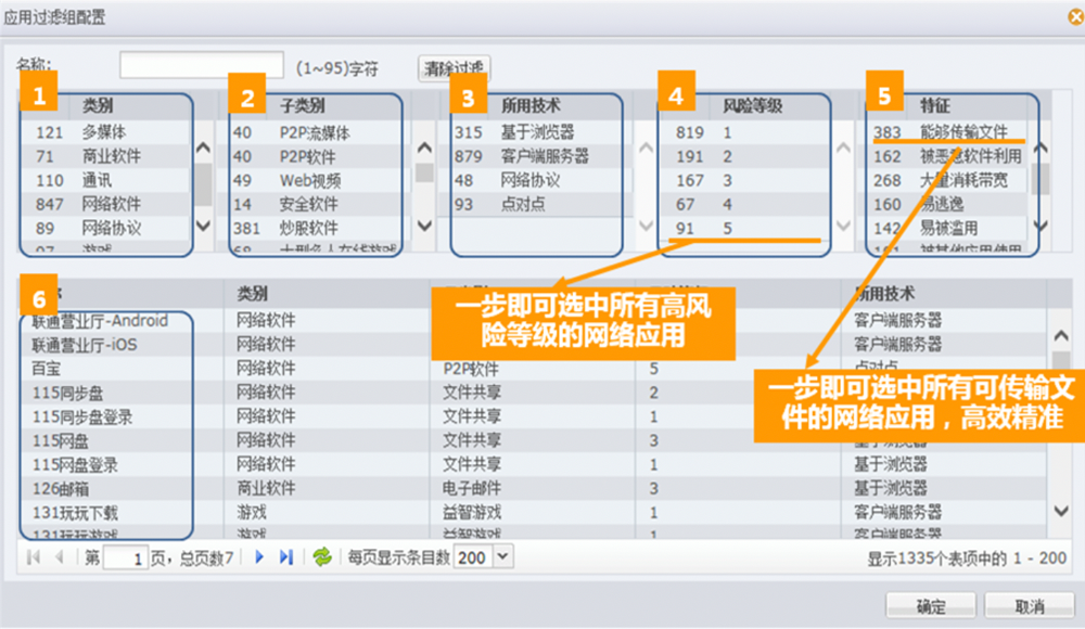 ●精准应用筛选。kdpay钱包官网数码下一代防火墙给予了精细化的应用筛选机制。用户可根据应用名称、应用类别、应用子类别、风险级别、所用技术、应用特征等6大条件。精确筛选出感兴趣的应用类型,如具备文件传输功能的通讯软件,或存在已知漏洞、基于浏览器的WEB视频应用等等,从而实现精细化的应用管控。