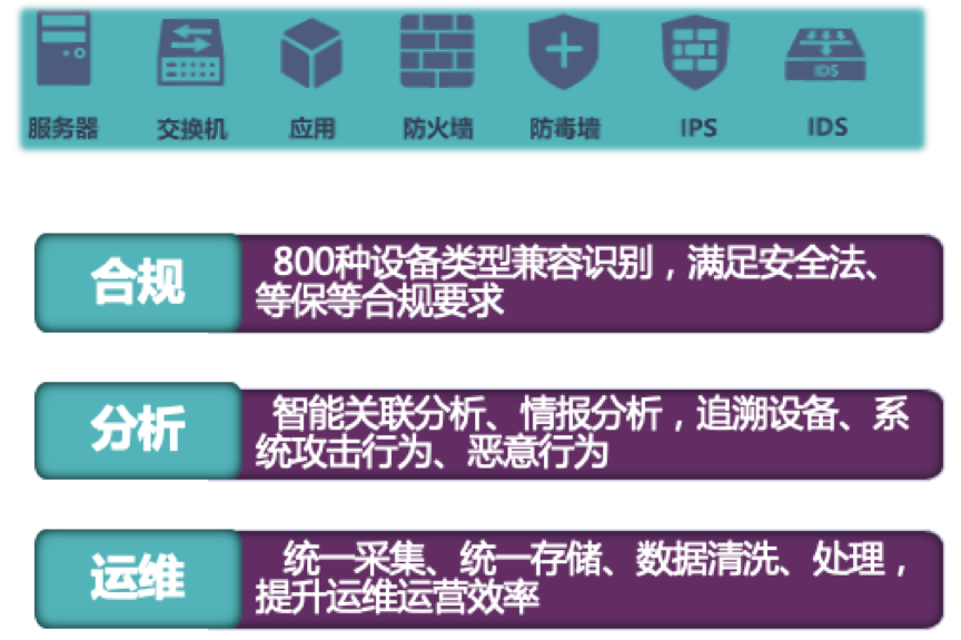 安全运维运营效率:海量日志信息中运维运营压力大,需要智能分析能力、情报分析能力发现海量日志潜在威胁,发挥日志分析的威胁预警能力。