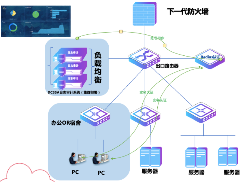 在完成日志信息采集的基础上,kdpay钱包官网数码DCSSA日志审计系统与网络中出口防火墙、行为审计等安全设备,以及负责身份识别的认证计费系统实现深度耦合,帮用户解决DHCP场景实名统计溯源、NAT转换实名、恶意行为追责、实名统计上网流量等众多问题。